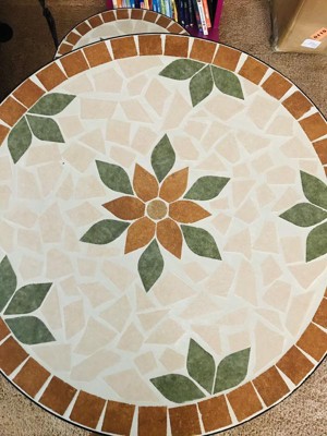 BEAUTIFUL DESIGN: Tan mosaic design with a floral pattern adds style and class to any outdoor atmosphere