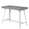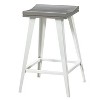 Give your modern farmhouse kitchen an industrial touch with this counter height table set. The white finished A-frames are urban in design but maintain a clean and open look. You'll find the curved seats of the stools, their footrests, and the table's trestle base that seconds as a footrest are all built with comfort in mind.