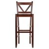 The Parkland 3pc Set High Table with V-Back Bar Stools - Walnut - Winsome is a classic square pub table with a warm and welcoming feel. This bar table set has a square table top in a beautiful walnut finish. Four matching V-back wooden counter stools complete the experience. This pub table set is a great place to enjoy a brunch, a bottle of wine or a long conversation. Square Table assembled size is 33.86"W x 33.86"D x 38.98"H. The set comes with 2 Stools. Each Stool stand at 16.93"W x 19.21"D x 42.17"H with seat dimension of 16.54 to 14.26" Wide and 15.55" deep. Seat height is 30" from ground. Back rest panel is 16.93"W x 12.17" High. Both Table and Stools are made from solid wood in warm walnut finish. Assembly Required.