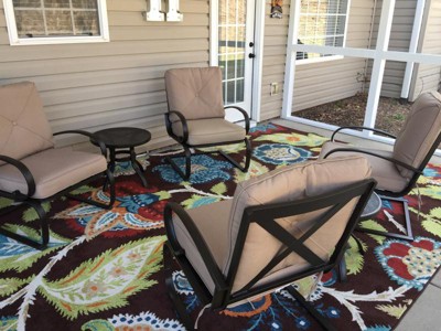 Very comfortable set. Looks great on our front porch. Had an issue with the handle on one chair and the issue was resolved immediately. Very pleased with the company.