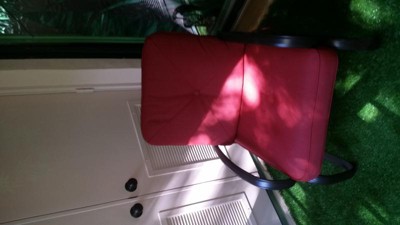 Great Buy .I bought these chairs after reviewing dozens and dozens of chairs .Way to much work ,But I wanted chairs that would hold 200 + lbs .These chairs and their reviews where all excellent .And for the Money there is nothing on the market you can compare them to .The Color is a Brick Red not a BRIGHT Red . Perfect