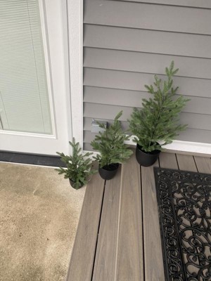 3pc Pre-lit Potted Balsam Fir Mini Artificial Christmas Tree Set Warm White Lights - Wondershop™: LED, Timer, Indoor/Sheltered Outdoor