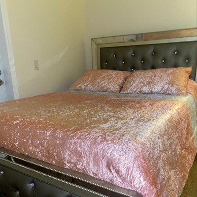I love this set! I really like the weight of the blanket and that it’s not too heavy or hot. The colors are super nice and true to the photo in my opinion. Texture is soft and it has a nice reflective shine as does velvety material. Only issue I had was receiving shams that were all yellow completely and not two toned.