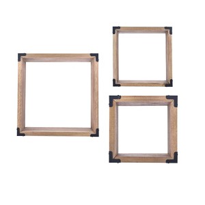 Danya B. 3pc Rustic Hanging Open Shadow Boxes Brown/Black: Wall Cubes, No Assembly, Wood Frame