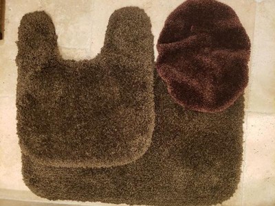 - 3 Piece Set Includes: Toilet Lid (17"x14"), Contour (21"x24"), and a Bath Rug (21"x34")