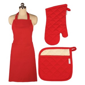 3pc Set Solid Cotton Apron Mitt Potholder - MU Kitchen