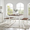 The traditional farm table gets an upgrade with the Shelby 3pc Dining Set. Classic turned legs and double x-back chairs, make this set ideal for both modern farmhouse and traditional spaces. Featuring an 18" drop leaf, the dining table can expand to accommodate up to six diners. Both benches offer spacious seating and maximum comfort, making the Shelby 3pc Dining Set the perfect spot for a family meal.
