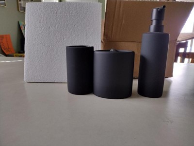 3pc Soft Touch Bath Accessories Set Black - 88 Main: Ceramic Tumbler, Spot Clean Care