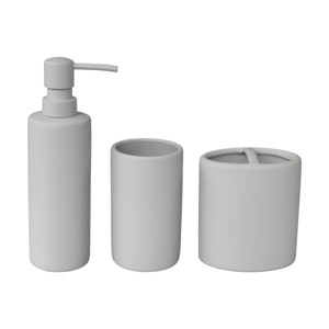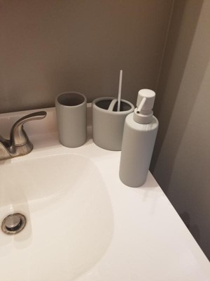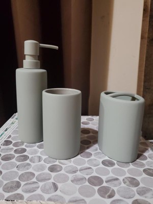 3pc Soft Touch Bath Accessories Set Gray - 88 Main: Ceramic Toothbrush Holder, Tumbler, Lotion Dispenser