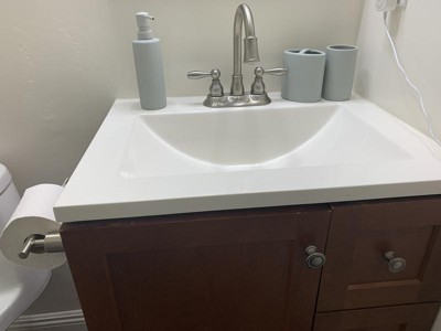 This three piece bath accessories set in gray from 88 Main is stylish and matches most any decor. The set comes with a soap dispenser, a cup, and a two section toothbrush holder. It is appropriately sized and doesn't take up too much room by the sink. It has a classic matte finish. The cup is easy to rinse and keep clean. The toothbrush holder can be cleaned easily with a baby bottle brush (not so much by hand scrubbing due to the narrow openings). Maybe a better design for the toothbrush holder would have been making this two pieces: the base and a two-sectioned lid to better facilitate cleaning. The soap dispenser is useful as well and easy to refill. This set is a nice addition to any bathroom. I placed it in our guest bathroom; it gives it a hotel style feel.