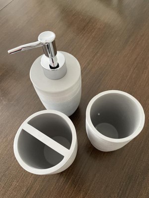 - Set includes 1 toothbrush holder, 1 soap dispenser and 1 tumbler
