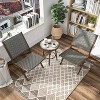 Create a stylish, modern sitting area on a porch or in a sunroom with this charming three-piece table and chair set. Modern silhouettes and finishes elevate the look, which boasts a glass topped table and two woven wicker chairs. Chairs feature a low profile for a relaxed and inviting setup. The round table offers a glass top and splayed legs and is perfectly sized for morning coffee or an evening nightcap.