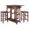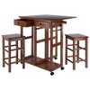3pc Suzanne Space Saver Drop Leaf Dining Set Teak - Winsome: Compact, Storage Drawers & 2 Stools