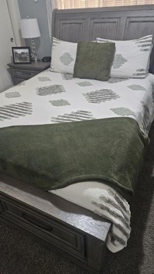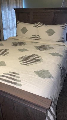 3pc Tahli Cotton Blend Chenille Duvet Cover Set Green/Ivory - Ink+Ivy