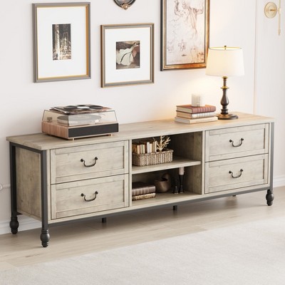 Whether you love a traditional look or a modern farmhouse vibe, the Tara 3pc Entertainment Set is a stylish take on a classic entertainment center. The sideboard features two wide full-extension drawers and two large cabinets with adjustable shelves. Each storage cabinet also has a full-extension drawer and two large cabinets with adjustable shelving. The Tara 3pc Entertainment Set is a great storage option for framing large TVs up to 65".