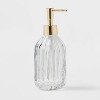 Set up a classic bath space with the 3-Piece Traditional Coordinate Bath Bundle Set from Threshold™. This bath bundle set includes a soap dish, soap dispenser and bath tumbler to meet your everyday needs. All the pieces are crafted from glass and feature a ribbed design for extra visual appeal that suits all your bathroom settings.