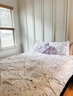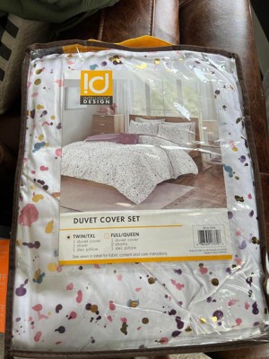 [This review was collected as part of a promotion.] The Abby Metallic Printed and Pintucked Duvet is really nice. It is soft and really light but keeps you warm, it is perfect for spring and fall weather. The colors and metallic droplet style print almost makes it look like a painters drop cloth and gives it a great artistic look. And if you want it is reversible and has a solid light lavender color on the opposite side to make it more consistent. It fits great on my queen size bed and is easy to make the bed up to look nice.