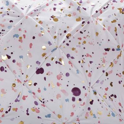 [This review was collected as part of a promotion.] Intelligent Design - Abby Metallic Printed and Pintucked Duvet Cover Set,This is a lovely,feminine lightweight Duvet,i love it,and a Teenager would certainly love it!It is Sparkly and bright,perfect for lightening up a room..Fair warning,be careful letting your cat up there,My Miss Maddie wanteds to chase the sparkling metallic dots!