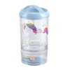 Add a magical touch to your little one's bathroom with the Unicorn and Rainbow 3-Piece Bath Accessory Set by Allure Home Creation. The set includes a Lotion Pump with a Plastic Blue Pump Head, Toothbrush Holder with a Blue Rim and Tumbler. Each piece is made of durable clear plastic decorated with unicorns and stars and filled with plastic beads, stars and hearts that move around when shaken. This fairy-tale design is sure to spark your child's imagination and make their bath time routine more fun. Hand Wash, Spot or Wipe Clean. Complete the look with the coordinating Unicorn and Rainbow Shower Curtain and Wastebasket.