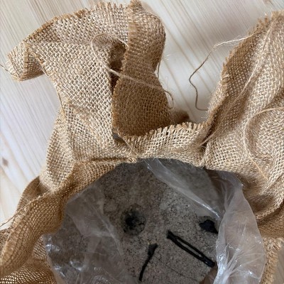 A: The trees are supported by brown burlap wrapped bases for a rustic look.