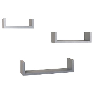 Danya B. set of 3 Nesting "U" Shelves makes space utilization efficient & is perfect for displaying your favorite books, collectibles, photos, toys, awards, CD's, videos, decorative items and more. They can be hung with the vertical sides either up or down, according to the effect you want to create. With the vertical sides up, it is like having a built in bookend. With its contemporary espresso finish, they are the ideal accent for any living space. Easy to install with no visible connectors or hanging hardware. All hardware included. Overall measures: Large: 17 x 4 x 4". Medium: 13 x 4 x 3.5". Small: 9 x 4 x 3". Maximize your storage space and showcase your style with Danya B. Floating 'U' Laminated Veneer Shelves. Whether you want to display your favorite books, collectibles, or photos, these shelves offer a sleek and efficient solution. With a versatile design, you can choose to hang the shelves with the vertical sides up or down, depending on the look you want to achieve. And with their attractive espresso finish and hidden installation hardware, these shelves are the perfect addition to any room in your home. Experience the convenience and beauty of Danya B. shelves today!