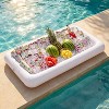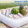 Turn Your Pool Into a Floating Snack Bar This 3-piece inflatable cooler tray set gives you all the floating surface you need. Each tray measures 5.5ft x 20" with a 4" depth, so there's plenty of room for drinks, snacks, and whatever else the party demands. Just fill 'em with ice, and your sodas, beers, and fruit stay cold for hours while you actually hang out with your guests.Made from thick, tear-resistant material, these trays can haul a serious amount of party fuel without leaking or fading. The built-in drain plug makes cleanup fast, and when the fun's over, they deflate in seconds and fold down small enough to stash anywhere.Pool, lake, beach, or backyard—these lightweight trays go where the party goes. Your summer spread, sorted.