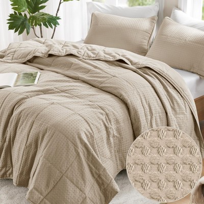 3Pcs Diamond-Pattern Quilted Top Comforter Set, Ruffle Edge Lightweight Ultra Soft Solid Bedding Set with Matching Shams