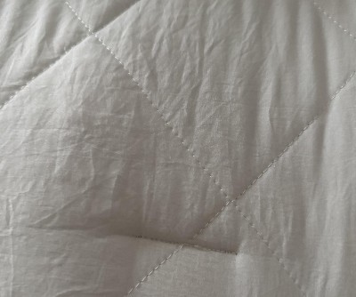 Uneven stitching throughout the comforter. It’s pretty but the stitching throws it off.