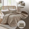 This stylish pinch pleat comforter, accented with a modern grid pattern, offers the perfect mix of plush loft and lightweight comfort. Filled with premium polyester, it delivers cozy warmth in cooler months and breathable comfort during warmer seasons, making it ideal for year-round use. The pre-washed microfiber fabric is specially treated for enhanced softness, pairing a clean look with subtle texture to complement any bedroom style. Crafted from high-quality microfiber and featuring our advanced dyeing process, this durable comforter set is machine washable for long-lasting beauty and everyday convenience.