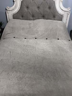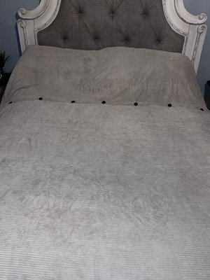 [This review was collected as part of a promotion.] This is a really nice duvet set! The corduroy is soft, and I love the button details! It comes with the duvet and 2 shams, which is great! It looks great on my bed! I tend to like to roll back my upper blanket, which is what I show in the second picture. It looks great either way!