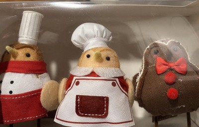 - Once in cocoa color and two in red-and-white chef and baker's outfits