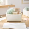 Organize your space by stashing a variety of essentials in this Felt Gifting Basket from Brightroom™. Made from recycled polyester material, this felt gifting basket is designed in a rectangular shape in a cream hue for a look that suits most decor styles, and the carrying handles allow for easy portability. Designed with an open top, this rectangular basket is perfectly sized to store anything from sunglasses and wallets to belts and cosmetics.