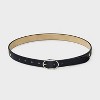 A: These belts feature shiny metal buckle closures for a secure fit.