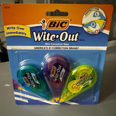 BIC Wite-Out Brand Mini Correction tape is perfect for lefties and righties. Fix mistakes fast with America's #1 Correction Brand*! Unlike the whiteout pen and white out liquid, this film-based tape applies dry so you can write over it instantly. The small size makes it great for school or home use. This pack contains 3 mini wite-out correction tapes. *Source: The NPD Group/ Retail Tracking Service/ U.S. Actual Unit Sales (Retail & Commercial Combined)/ Jan - Dec 2017