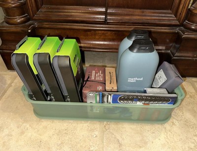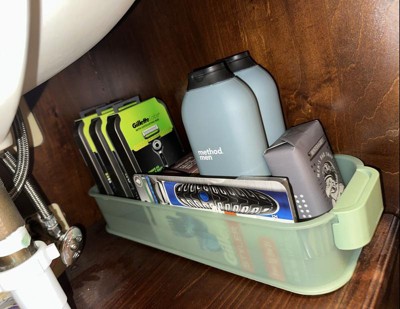 [This review was collected as part of a promotion.] My husband keeps all of his shaving and bathing supplies haphazardly in the bathroom vanity under the sink. When I open it to look for something, one false move and every tumbles out. I found this Brightroom slim bin the solution to our organizational problem. It fit perfect in the opening between the sink and the cabinet wall. It holds so much and it’s easy to see what we have and it’s easy to access without knocking everything out of the cabinet. I love the green color and the bin itself is heavy duty plastic. I love it so much, I’m going to get another one for the opposite side. I received an incentive to write this review.