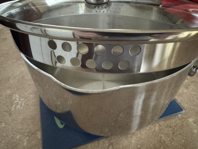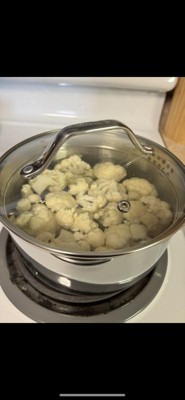 - Aluminum core is fully surrounded by two layers of stainless steel for quick and even heating
