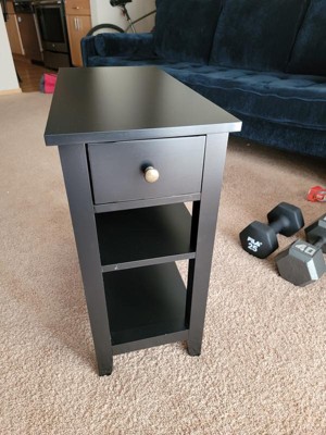 3Tier Nightstand Bedside Table Sofa Side End Table w/Double Shelves Drawer Black