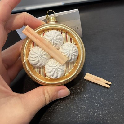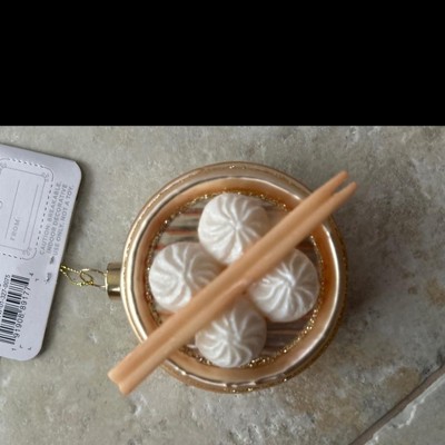 I was elated to see this and a miniature platter of gulab jamun among the food glass ornaments and regretted not picking up the sole steamed buns ornament at my local store; I ordered for pickup the ornament from a neighboring location. My only complaint is that the chopsticks had fallen off the ornament by the time I had picked up my order, but the paint, glitter, and everything else were fine. (The ornament stood out to me as a reminder of my visit to Singapore years ago and of more recent dim sum experiences with my family.)