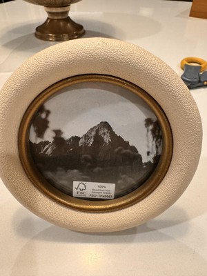 Display your cherished memory with the 4"x4" Shagreen Wrapped Single Image Frame Cream - Threshold™ designed with Studio McGee. The luxurious texture and elegant color add a sophisticated touch to any room. Perfect for your desk, shelf or bedside table, this frame complements any decor style. Easy placement and beautifully crafted, this frame is the ideal way to showcase your favorite photo.