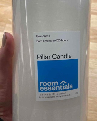 Illuminate your space with the 4" x 7" Fragrance Free Candle White from Room Essentials™. This unscented candle is great for setting a minimal, bright ambiance. Crafted from paraffin wax, it's designed to go on for longer with an approximate burn time of 120 hours. With a single wick, this versatile pillar candle is ideal for setting the table for dinner parties or enjoying a quiet night in.