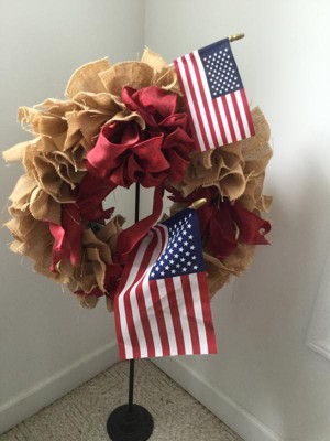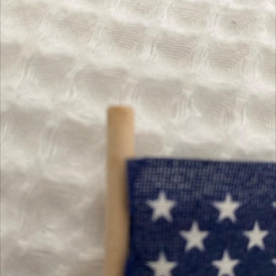 This 8-pack of 4 X 6 in. handheld U.S. stick flags are made of printed woven poly-cotton (70% polyester and 30% cotton). Our Sentinel® poly-cotton fabric is designed to be fade resistant and durable yet very light weight. Stick flags are intended for decoration within planters, in your home, or for display at patriotic events. Betsy Flag's® by Valley Forge® is proud to make FMAA certified flags. U.S. law requires every American flag to be labeled with its country of origin. Look for the “Certified Made in U.S.A.” label, which verifies that your flag has been made in the United States with materials that are domestic in origin and that all processes in every step of its manufacturing were completed in U.S. facilities with U.S. labor. Valley Forge® stands behind its promise to ensure domestically made products. This eight-pack of handheld American stick flags each measure four inches by six inches. The poly-cotton flags are attached to a 10 in. wood staff.