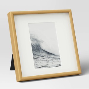 The Deep Profile Metal Table Frame by Threshold™ offers sturdy elegance. Its steel frame ensures durability, while the die-cut matting adds a sophisticated finish. Display your cherished memories horizontally or vertically with the versatile easel back mount. Ideal for tabletop placement, this frame effortlessly combines style and functionality. Elevate your décor with the Deep Profile Metal Table Frame from Threshold™.