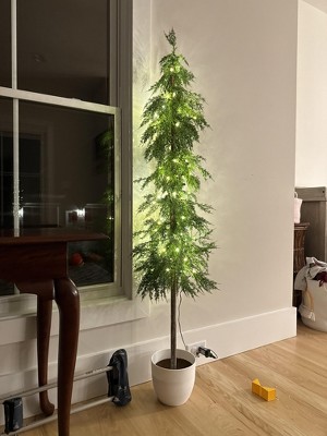 Add a touch of festive greenery to your home with this Decor Christmas Artificial Tree Green from Wondershop™. This freestanding green faux balsam tree features a traditional silhouette adorned with lights to instantly brighten up your space. Plus, the pre-lit tree comes in a white pot for easy placement on the ground in any room.