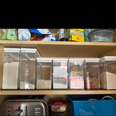 I loved the easiness of the product. They also look nice and stack well. But let me say they do not keep in or out pantry bugs! so there is no air tight seal. I bought a ton of these after getting the little pest from a spice packet. cleaned the kitchen cabinets and put all dry ingredients and anything that came in paper in one of these. well sad to say these containers did not pass the test. I'll keep the ones I have but dont use any loose ingredients inside! my ball/mason jars stayed sealed! not a pest insight near my grains. Others that had a default to pests not being able to pass their lid barrier worked far better as well. I had to throw quite a few of these out because of the pantry pest getting in. they were in the rim of the lid, the plastic seal part. It was awful. I have a kiddo with severe food allergies so everything has to be home made. I buy bulk gf pasta when it's on sale ( also because it can go out of stock at various stores) and seasonal gf/dairy free flour products to last until they get released again. which is once a year. I lost so much because I put them in these containers. its stressful because somethings I truly can't just buy as we need because of availability and price. so being able to safely store certain foods is important for my home.