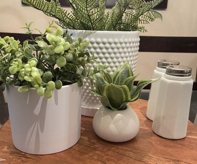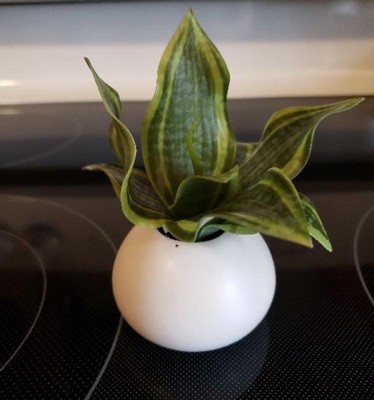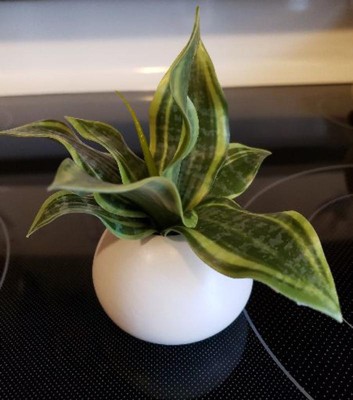 Bring a realistic touch of greenery to your decor with this Tabletop Snake Artificial Potted Plant from Threshold™. This artificial arrangement features a realistic-looking snake plant that's housed in a white dolomite pot with faux soil filler for instant display. Place it on a side or console table with other real or faux plants for a fresh, welcoming look.