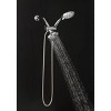 [This review was collected as part of a promotion.] I was excited to get this shower head to replace a small single head stationary one. I love that it is a double head. It was easy to install and the directions were easy to follow. It fits well in my shower. I'm short, so it's a stretch for me to get the showerhead with the hose on it down.