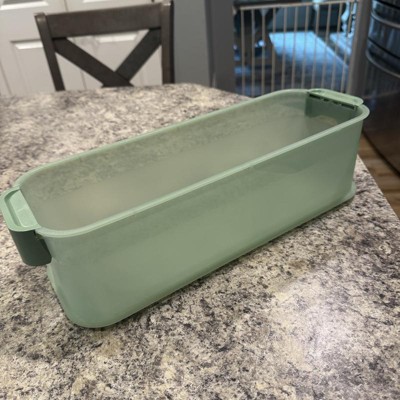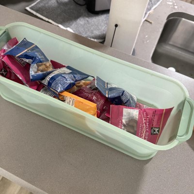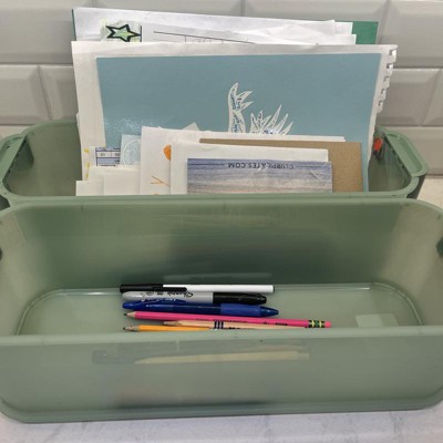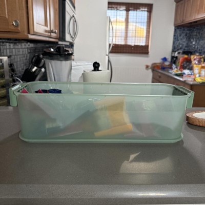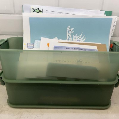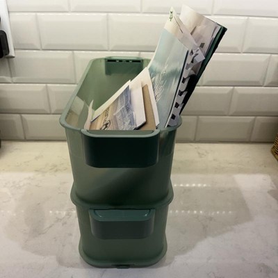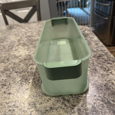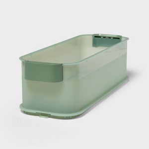 Organize your accessories with the help of this Slim Bin from Brightroom™. Featuring a stackable design for compact spaces, this green bin is transparent in hue, allowing you to see the stored items inside easily. Designed in a slim shape, this storage box comes with two side integrated handles for easy carrying, and it has a capacity of 4.5 quarts, offering ample space for storing a range of items.