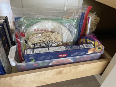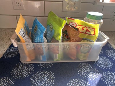 Handy bin for a long space. This bin was perfect to hold some loose bagged items in my pantry. Everything is nice and organized in this slim bin. The color is utilitarian and will work in most spaces. The bin alone feels a little flimsy but if you’re not toting it around much, it’s not an issue.