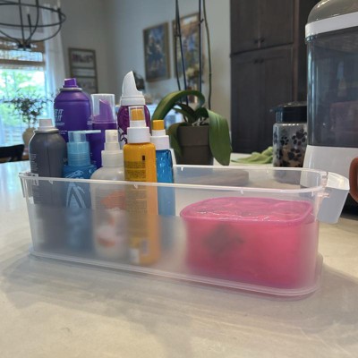 Whether decluttering your home or putting away bathroom essentials in one place, this 4.5qt Slim Bin Brightroom™ is the right fit for the job. Featuring a stackable design for compact spaces, this transparent bin lets you easily see what you've stored inside. Designed in a slim shape, this storage box comes with two side integrated handles for easy carrying and a capacity of 4.5 quarts for ample storage.