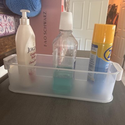 [This review was collected as part of a promotion.] I grabbed this for my neighbor to use in her college door. It perfectly fits sideways on many different shallow spaces. It’s so nice. The plastic is extra sturdy so we can hold multiple things inside the picture here I took a big size of mouthwash and it fits in there just fine as long as other cleaning products. Definitely a keeper and can be easily cleaned as needed. I received an incentive to write this review.
